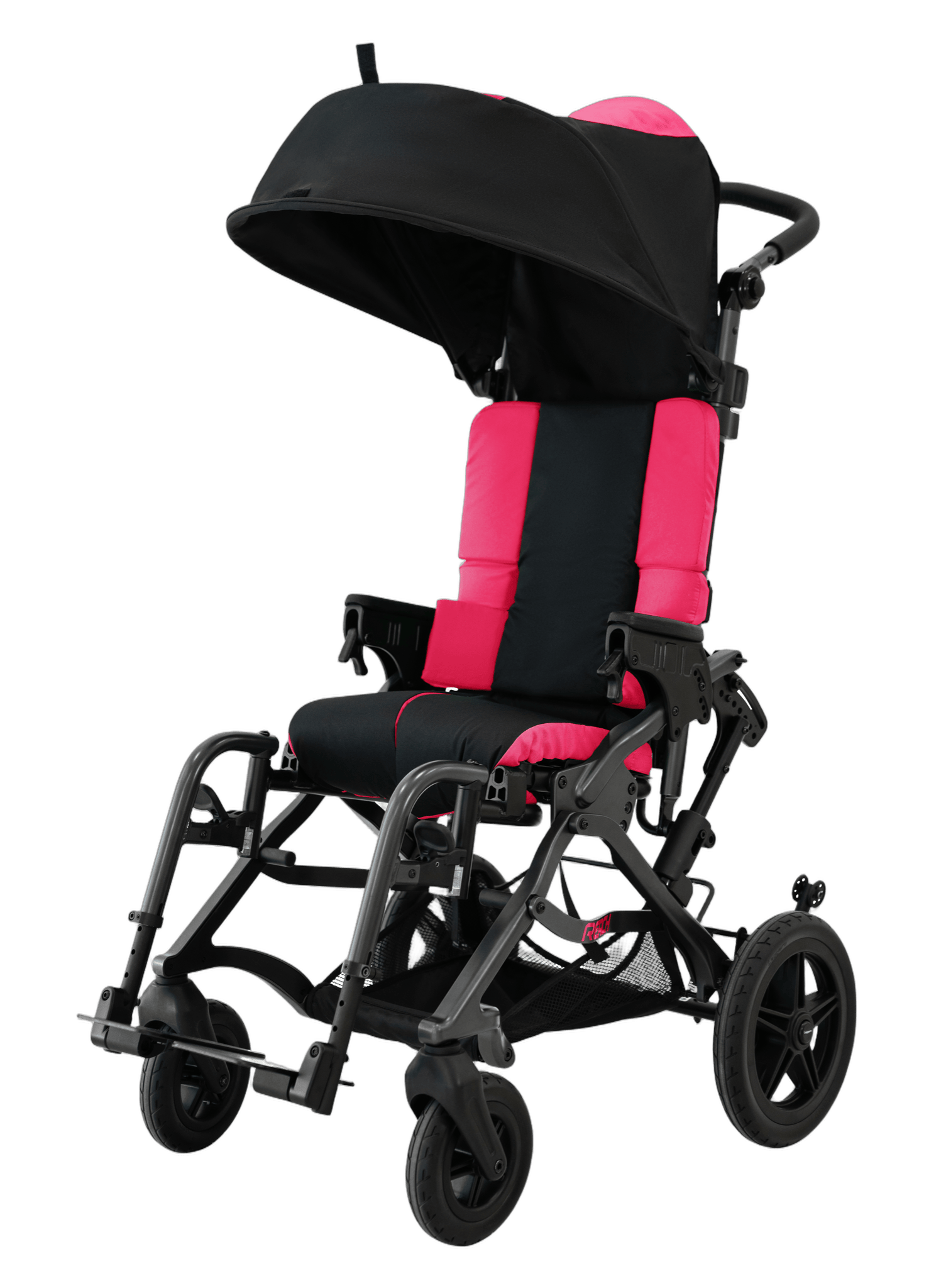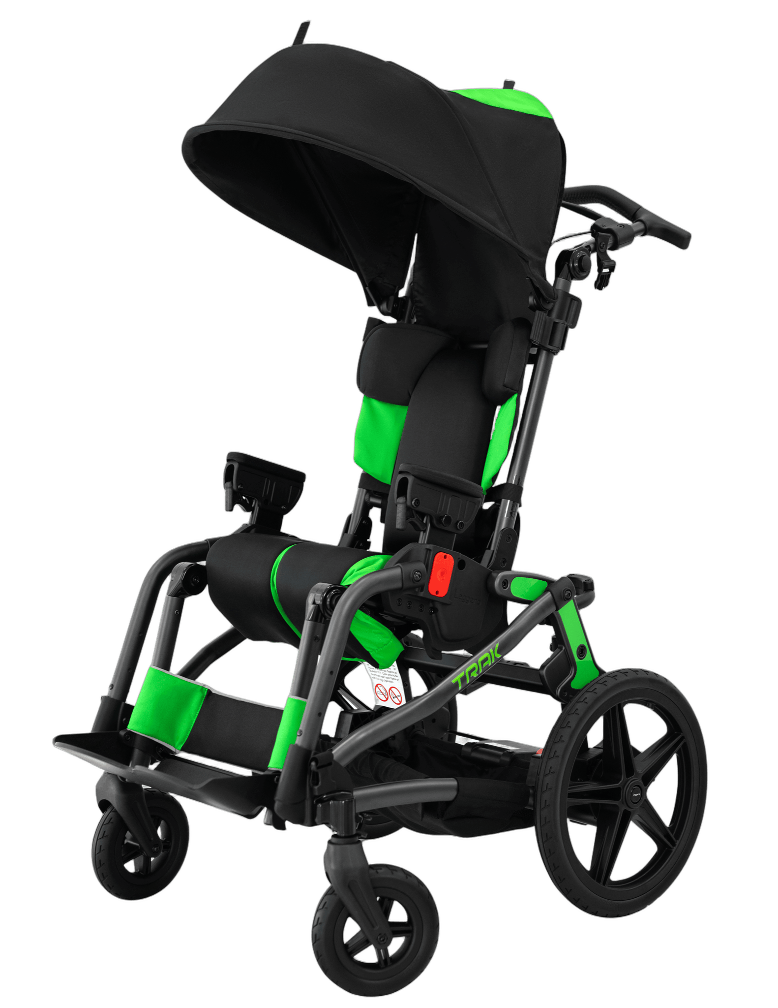 Need aggressive seating and tilt in space without the wheelchair look? The TRAK might be what you’re looking for. 45 degrees of tilt in space, 90-120 degrees of hip angle give this adaptive stroller everything your tilt in space wheelchair offers, with a foldable stroller base.